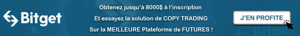 L’automatisation est disponible via la plateforme de trading Bitget, Si vous n'avez pas encore de compte Bitget ce n'est pas grave. Nous vous proposons un lien d'affiliation pour profiter, en plus de l'inscription, de bonus et de frais réduits. Pour cela il suffit de cliquer sur le bandeau ci-dessous. S'inscrire sur Bitget (-5% de frais)