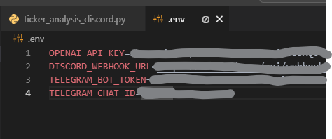 Par souci de sécurité, nous plaçons l’URL du webhook Discord, la clé API OpenAI ainsi que les identifiants pour Telegram dans un fichier .env. N’oubliez donc pas de créer ce fichier .env au même emplacement que votre script Python, avec le contenu suivant :