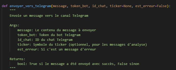 La fonction d’envoi vers Telegram est assez similaire à celle de Discord, à une différence près : vous devez fournir deux variables d’authentification supplémentaires dans votre fichier .env :