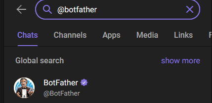 - Lancez une discussion avec @BotFather