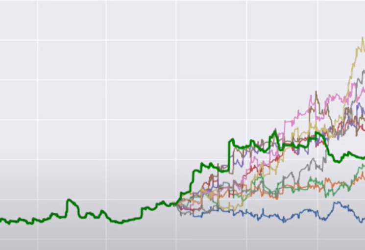 - Générez 10 000 trajectoires simulées à partir des gains et pertes quotidiens du backtest. Chaque courbe représente un scénario possible d’évolution.